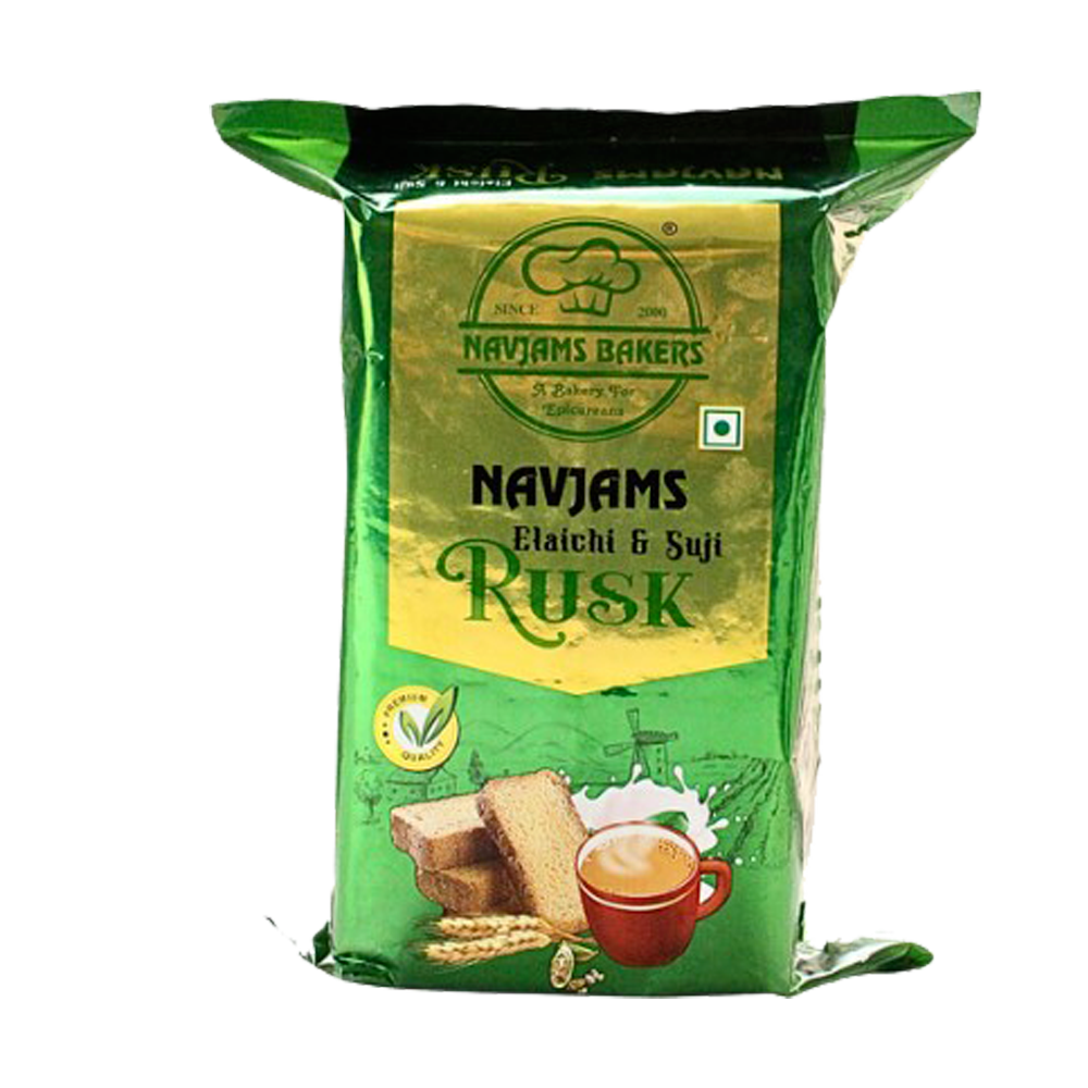 Elaichi Suji Rusk is a crispy, aromatic tea-time snack made with the goodness of semolina (suji) and infused with the warm, soothing flavor of cardamom (elaichi). Baked to golden perfection, it offers a delightful crunch and a subtle sweetness that complements every sip of your tea or coffee.
