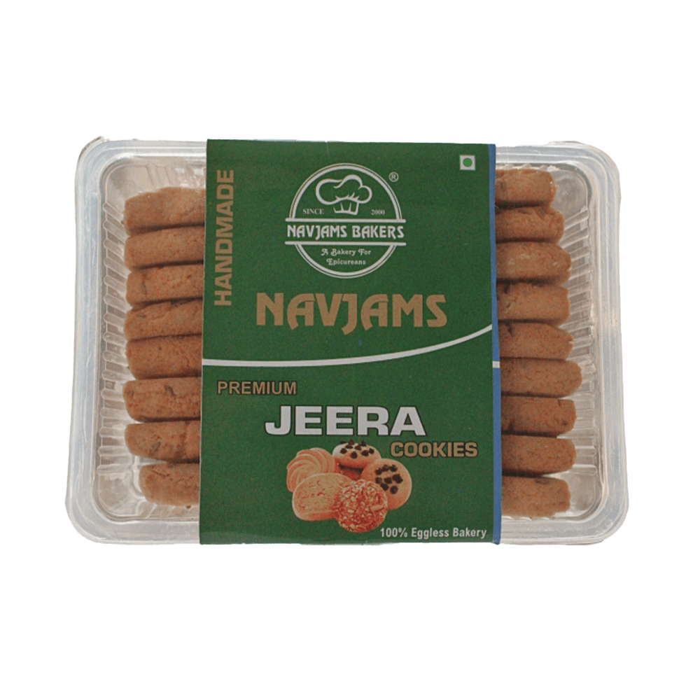 Navjam Baker Premium Jeera Cookies are crisp, buttery delights infused with aromatic cumin (jeera) seeds. Baked to golden perfection and made without artificial preservatives, these savoury-sweet treats are perfect with tea or as a light, flavourful snack any time.